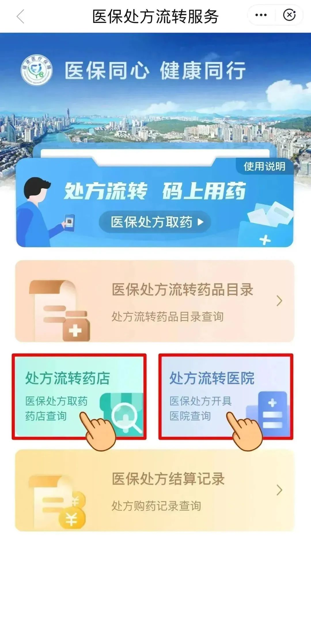 参保人员可以通过闽政通APP、“国家医保服务平台”APP、“福建医疗保障”微信小程序,点击进入【双通道服务】,即可查询提供“双通道”服务的医疗机构和药店。