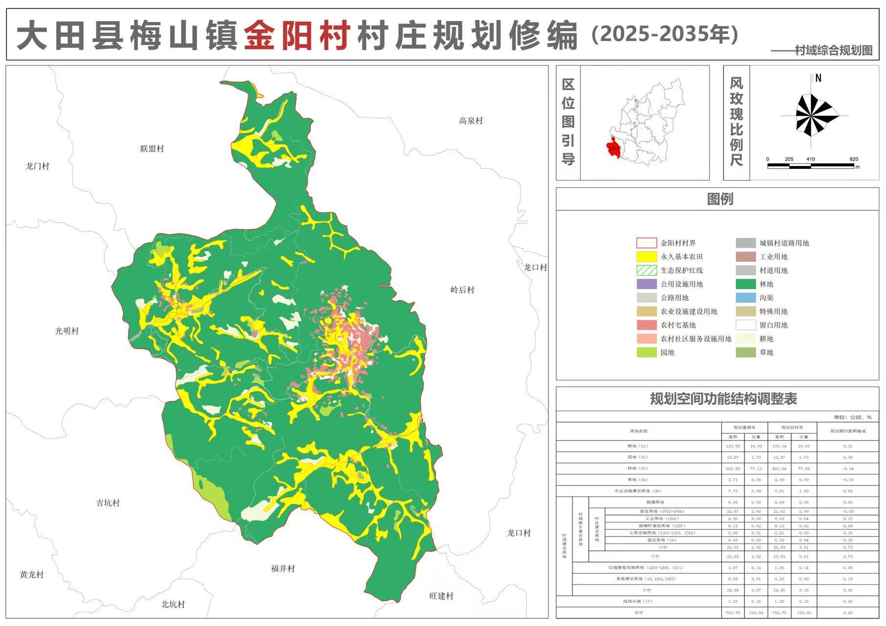 《大田县梅山镇金阳村村庄规划修编(2025-2035)》规划成果批前公示