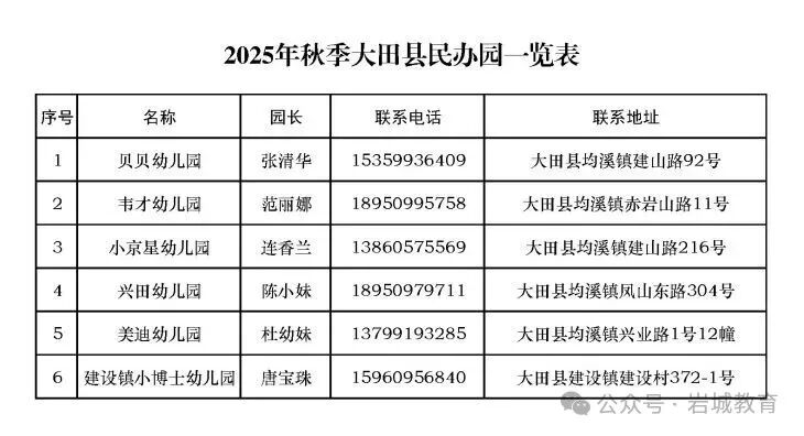 大田县教育局关于公布2025年民办幼儿园“白名单”的公告