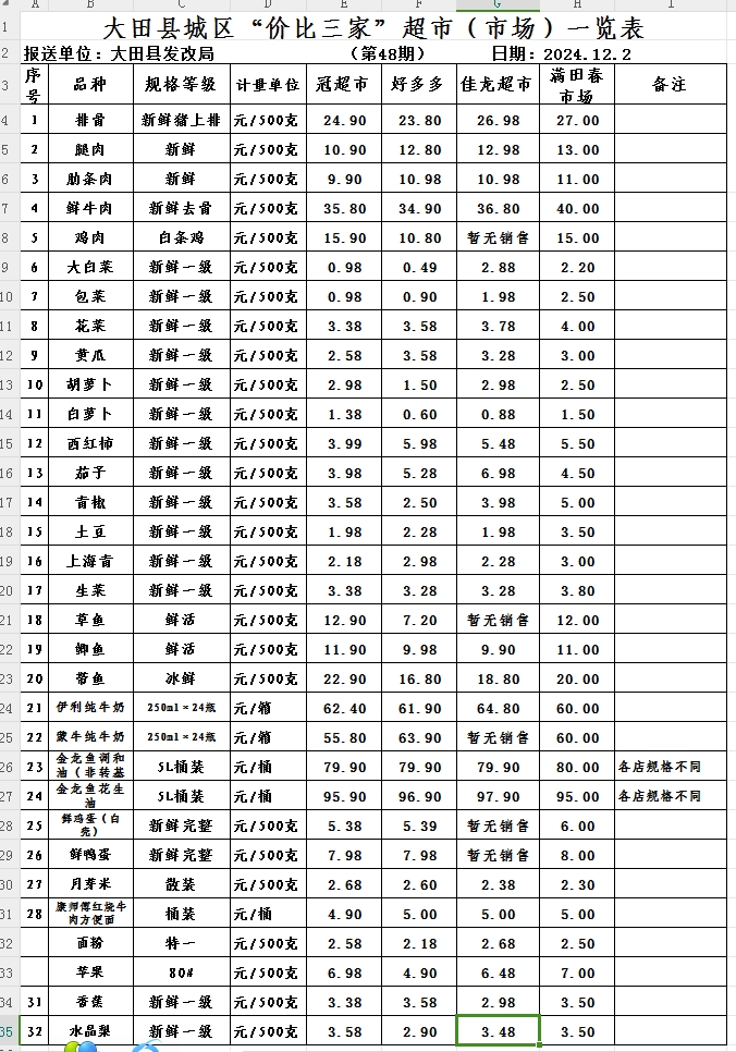 大田县城区“价比三家”超市(市场)一览表2024.12.02