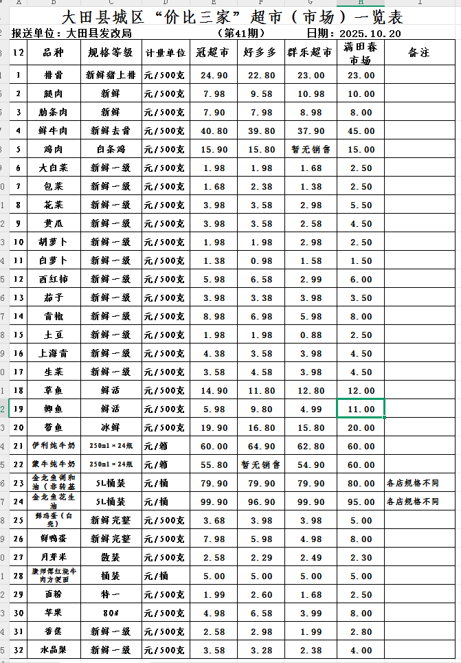 大田县城区“价比三家”超市(市场)一览表2025.10.20