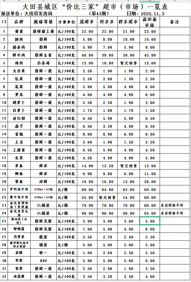 大田县城区“价比三家”超市(市场)一览表2025.11.03