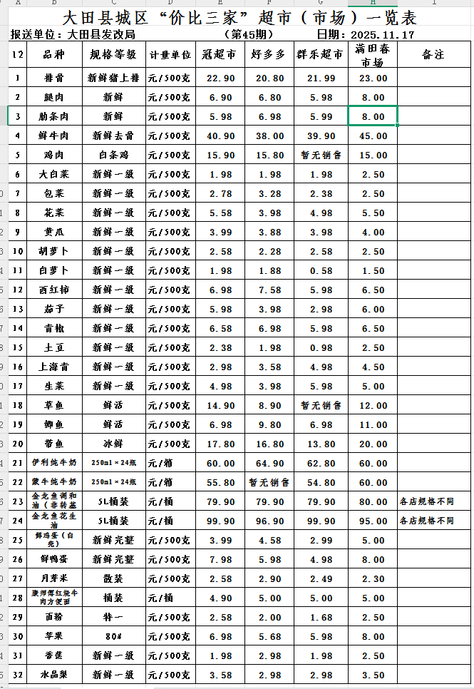 大田县城区“价比三家”超市(市场)一览表2025.11.17
