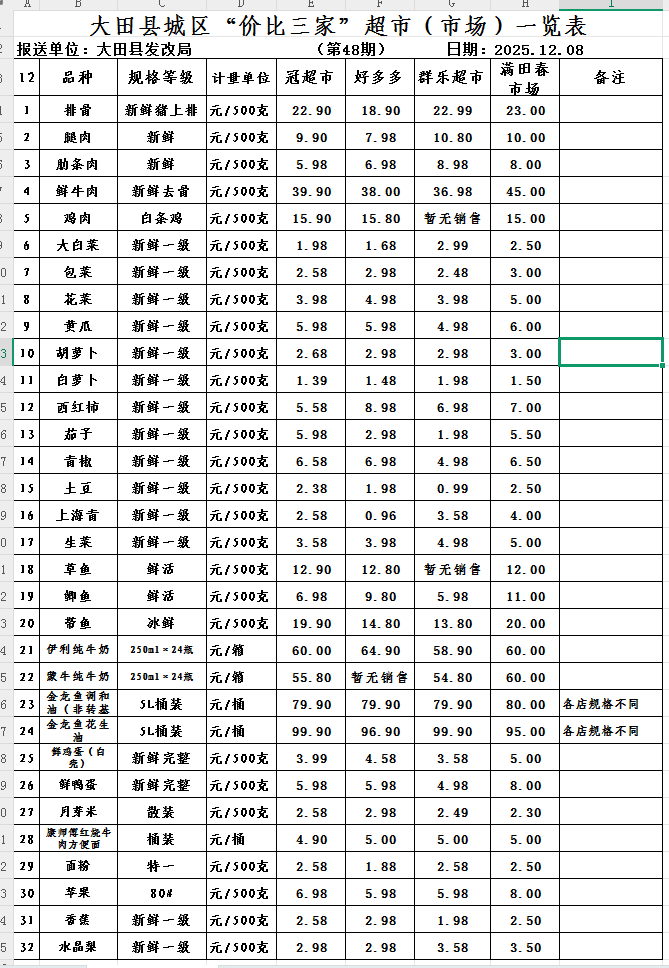 大田县城区“价比三家”超市(市场)一览表2025.12.08