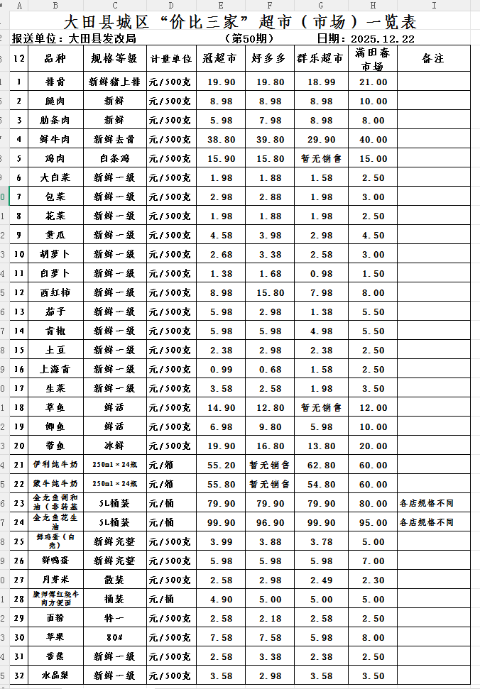 大田县城区“价比三家”超市(市场)一览表2025.12.22