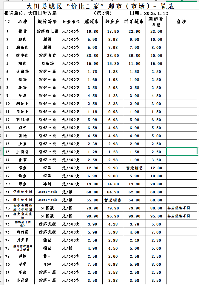 大田县城区“价比三家”超市(市场)一览表2026.1.12