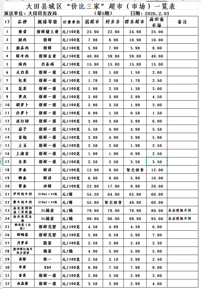 大田县城区“价比三家”超市(市场)一览表2026.2.03