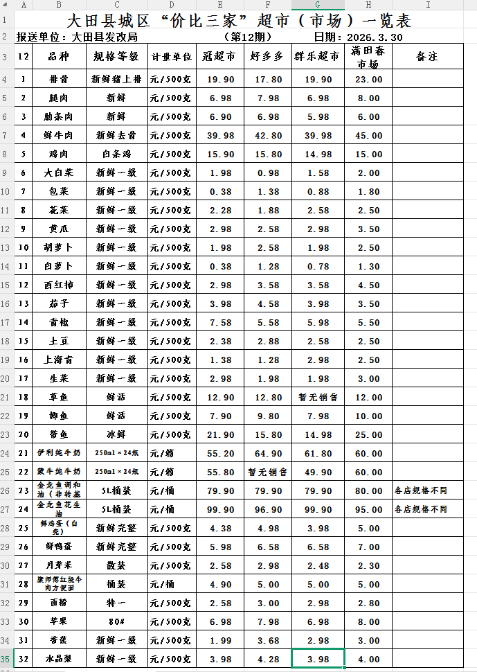 大田县城区“价比三家”超市(市场)一览表2026.3.30