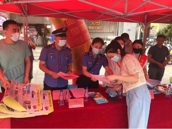 活动中,执法队员走上街头,向过往市民分发《共建诚信美德 共创文明风尚》倡议书,号召广大市民积极参与了解城市管理、文明创建、垃圾分类等工作。对于沿街商铺,执法队员逐一入户,在发放倡议书的同时,向商家宣传并讲解“门前三包”,引导商家管好自家“门面”,及时清理门前杂物、垃圾、小广告,做到门前无脏乱,规范经营。